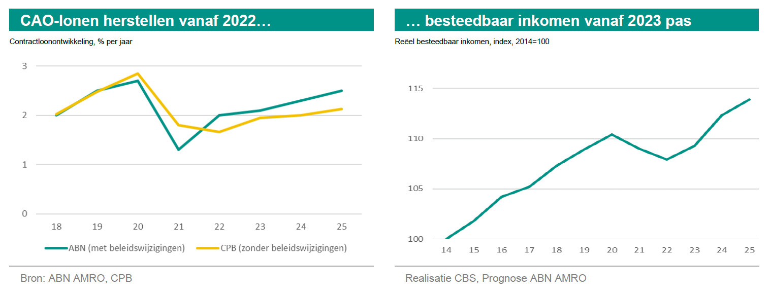 We verwachten dat de cao-lonen vanaf 2022 tussen de 2 en 3 procent per jaar stijgen