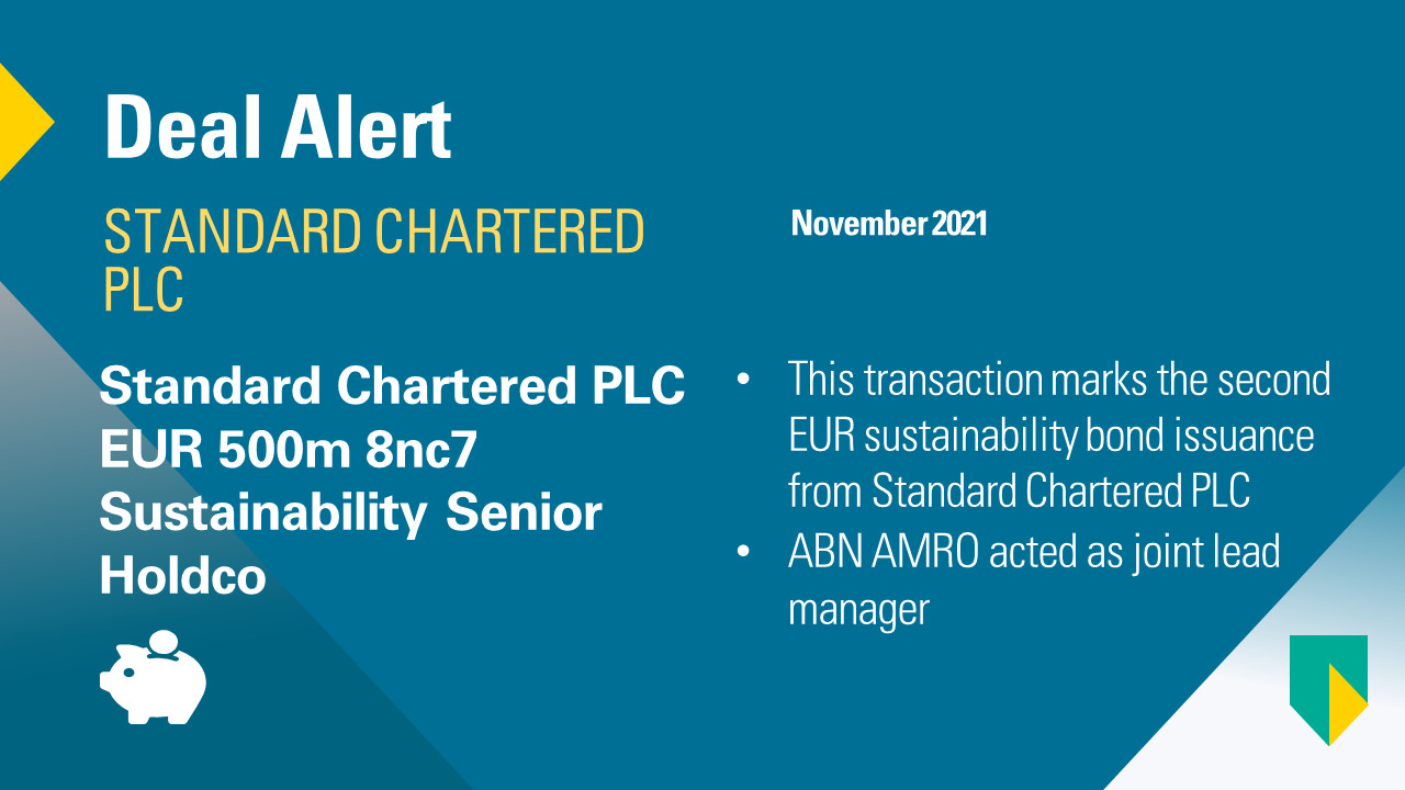 ABN AMRO is joint lead for 2nd EUR sustainability bond issuance from Standard Chartered PLC
